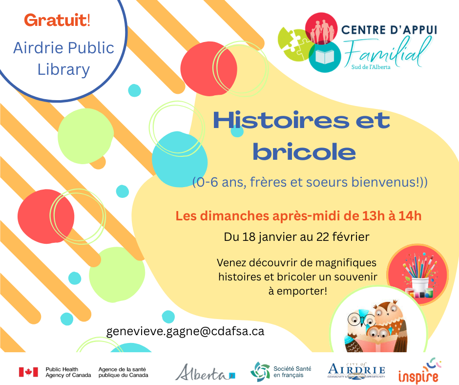 Vous cherchez une activitĂ© douce et crĂ©ative pour Ă©gayer les aprĂšs-midis d’hiver de vos enfants ? Le Centre dâAppui Familial, en partenariat avec la BibliothĂšque dâAirdrie, invite les familles Ă plonger dans l’univers merveilleux des contes et de la manipulation crĂ©ative.
