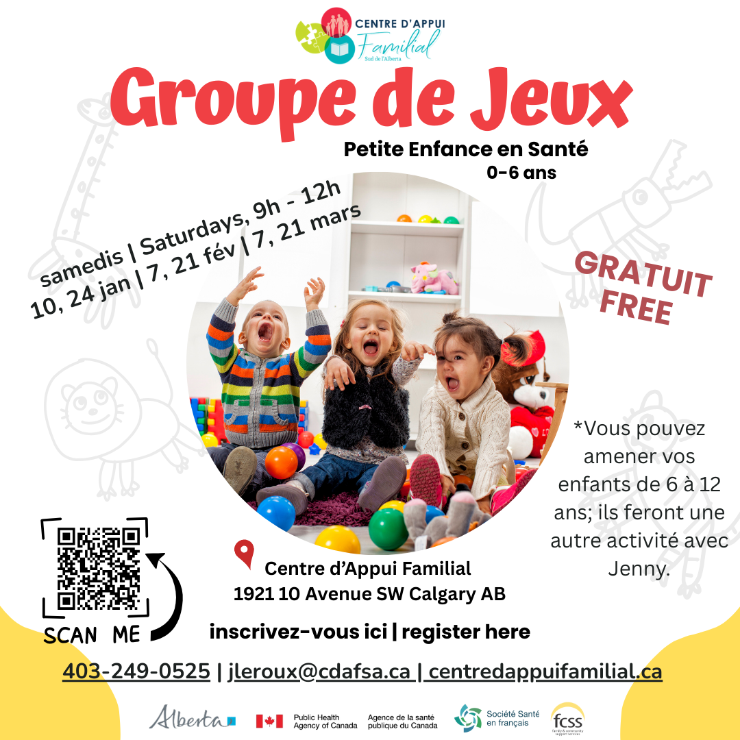 Rejoignez-nous pour nos Groupes de Jeux amusants et stimulants, conçus pour favoriser le développement et le bien-être de votre enfant dans un environnement sécuritaire et joyeux. C’est l’occasion idéale pour les petits de 0 à 6 ans de socialiser, d’explorer et de jouer librement!