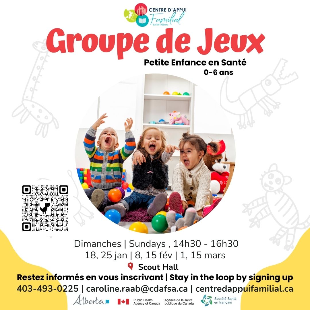 Rejoignez-nous pour nos Groupes de Jeux amusants et stimulants, conçus pour favoriser le développement et le bien-être de votre enfant dans un environnement sécuritaire et joyeux. C’est l’occasion idéale pour les petits de 0 à 6 ans de socialiser, d’explorer et de jouer librement!
